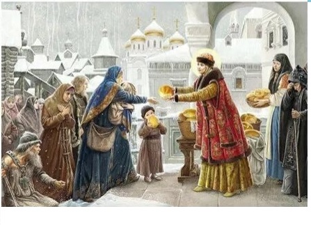Больным, которые не смогли дойти до двора, развозили по улицам хлеб, мясо, рыбу, овощи, мёд, квас. Княжеская«милостыня»должна была влиять на развитие благотворительности со стороны бояр и не только. Церковно-монастырская благотворительность – это содержание больниц, богаделен, странноприимных домов, покровительство нищим и убогим.